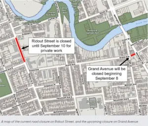 Grand Avenue will also be closed between Wellington Road and High Street starting Monday, Sept. 8, until October as part of the city’s Clark Bridge widening project.