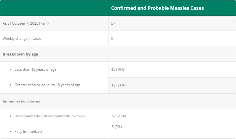 The Middlesex – London Health Unit (MLHU) reported 57 cases since last outbreak. 52 of the cases did not have proper immunization to measles.